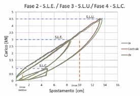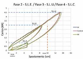 Prova di spinta su due punti al centro della balaustra con “crick” e dinamometro. Carico distribuito su due punti.