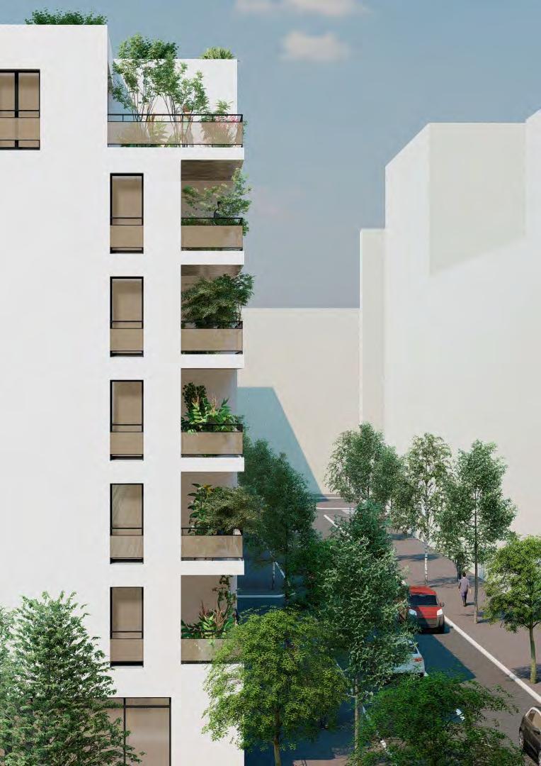 Chaque logement bénéficie d’un espace extérieur, loggias dans les étages et terrasses dans l’attique. Ces espaces extérieurs offrent une continuité entre l’intérieur et l’extérieur, permettant aux résidents de bénéficier de leur propre coin de verdure en ville.