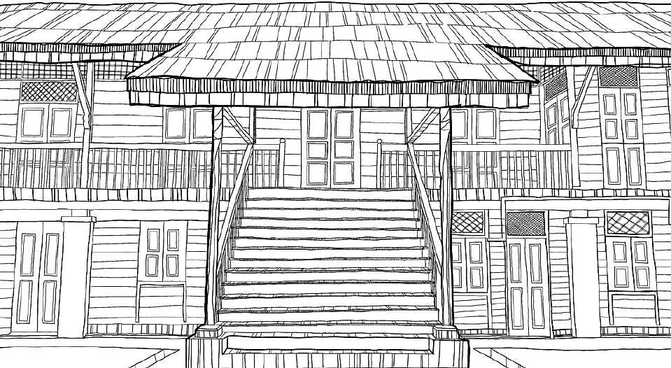 Top: Rear perspectives focusing at the enclosed leisure area of the second floor