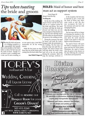 no one wants to give a toast that’s memorable for all the wrong reasons. While the best toasts are often those that veer off the beaten path, coming from the heart rather than See TOAST Page 22