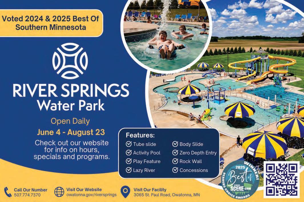 park and recreation areas and miles and miles of trails for biking, walking, and cross country skiing. With a water park for the kids and golfing for the grownups, Owatonna has the activities to keep the whole family entertained! All that and we haven’t even mentioned the Steele County Free Fair, Minnesota’s largest county fair! Thank you so much for choosing Owatonna and we look forward to hosting you!