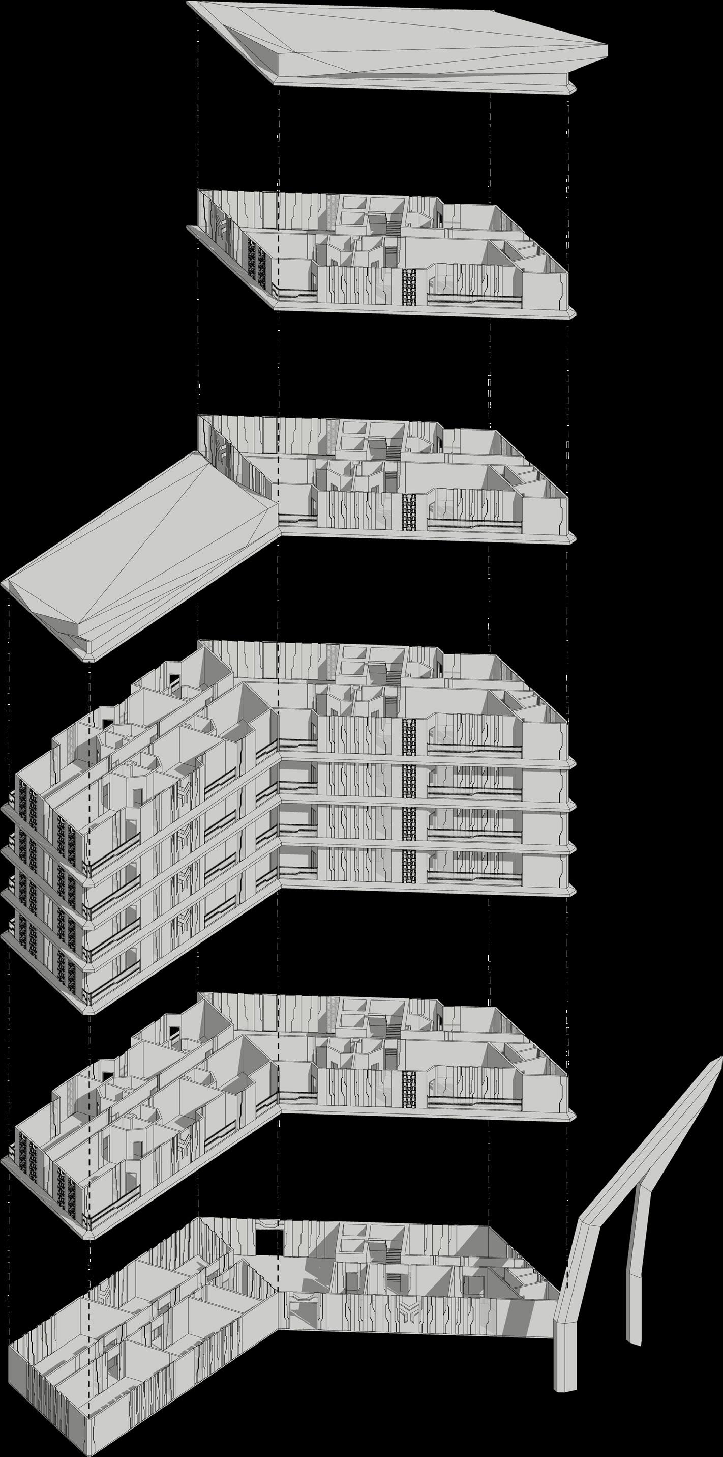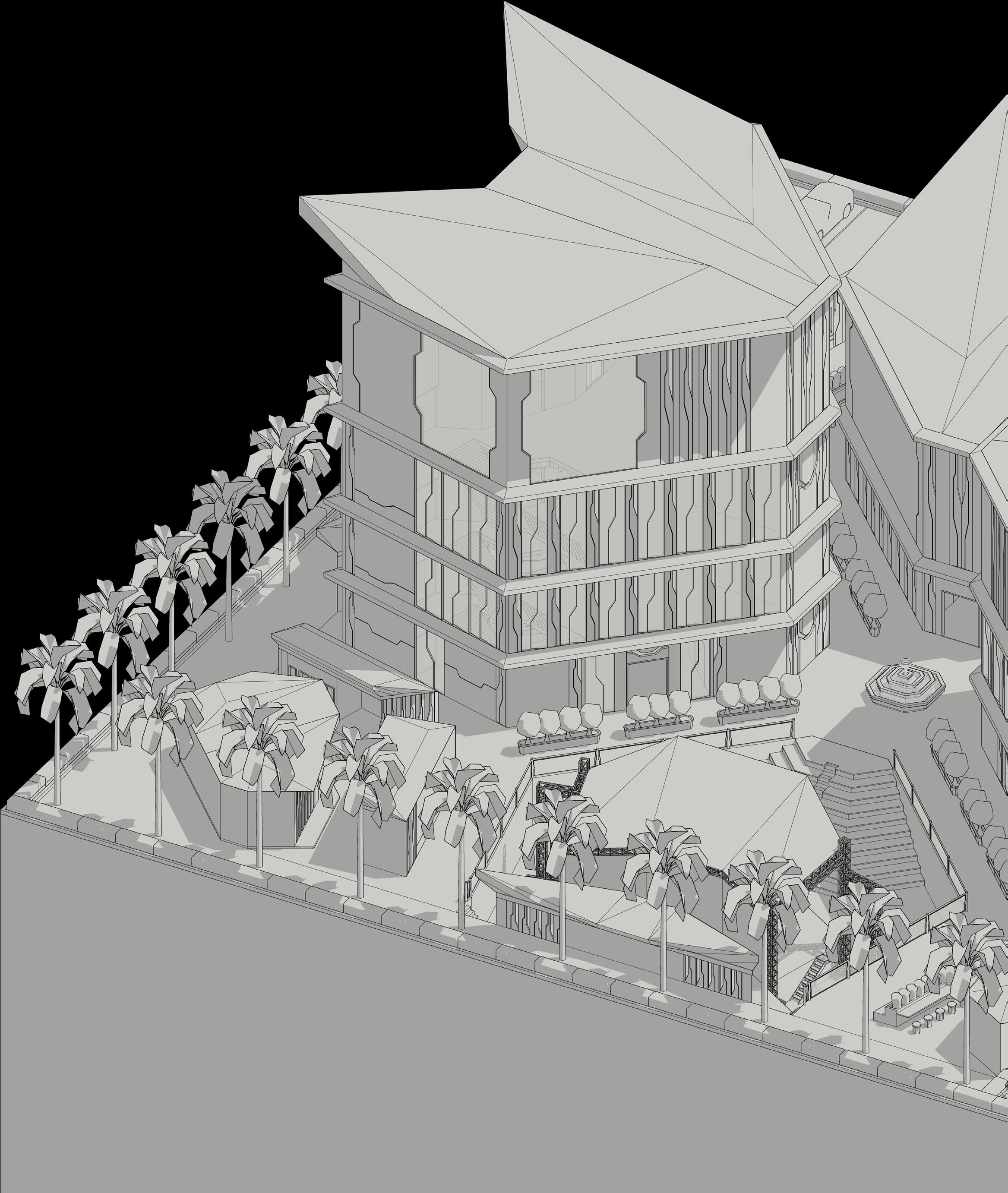 Bentuk tatanan massa ini terinspirasi dari bentuk hexagon atau sarang lebah (honey comb) yang sudah di gubah sedemikianrupa lalu di aplikasikan pada tatanan massa bangunan dengan menggunakan analogi simbolis. Dengan tema futuristic / masa depan yang akan di usungnya. bangunan ini akan berdiri dengan bentuk yang unik dan tidak biasa dan mungkin akan terlihat asing bagi sebagian orang. Dan juga dalam pendesainannya akan di dasari dengan pendekatan analogi yakni yang mana pendekatan ini sendiri adalah upaya desain yang berangkat dari suatu ‘pengibaratan / pengandaian’.