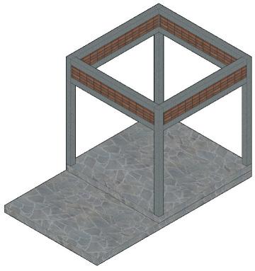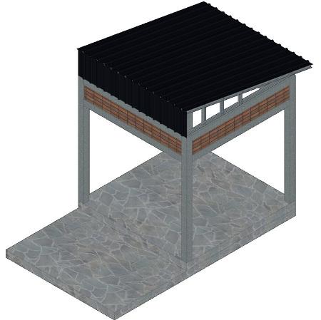 Desain menggunakan struktur permanen berupa kolom dan balok beton setinggi 2,4 - 3 meter terhitung dari elevasi ±0,00 meter. Penutup bangunan dapat menggunakan material permanen (bata) maupun non-permanen (kayu, baja ringan, papan triplek).