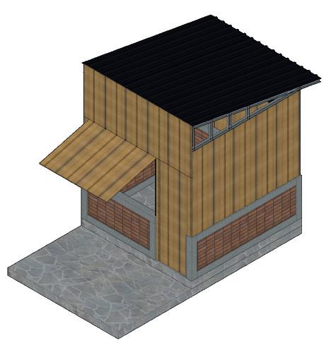 Desain menggunakan dinding bata permanen setinggi 1 meter terhitung dari elevasi ±0,00 meter. Penutup bangunan atas menggunakan material non-permanen (kayu, baja ringan, papan triplek).