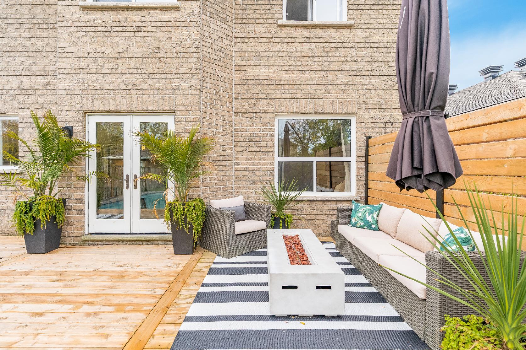 Tucked against a backdrop of lush greenspace,thishome invitesyouto unwind in yourown private backyard oasis,a spaciousdeckand tranquilviewsset the perfect sceneformorning coffeesorsunset gatheringswith friends