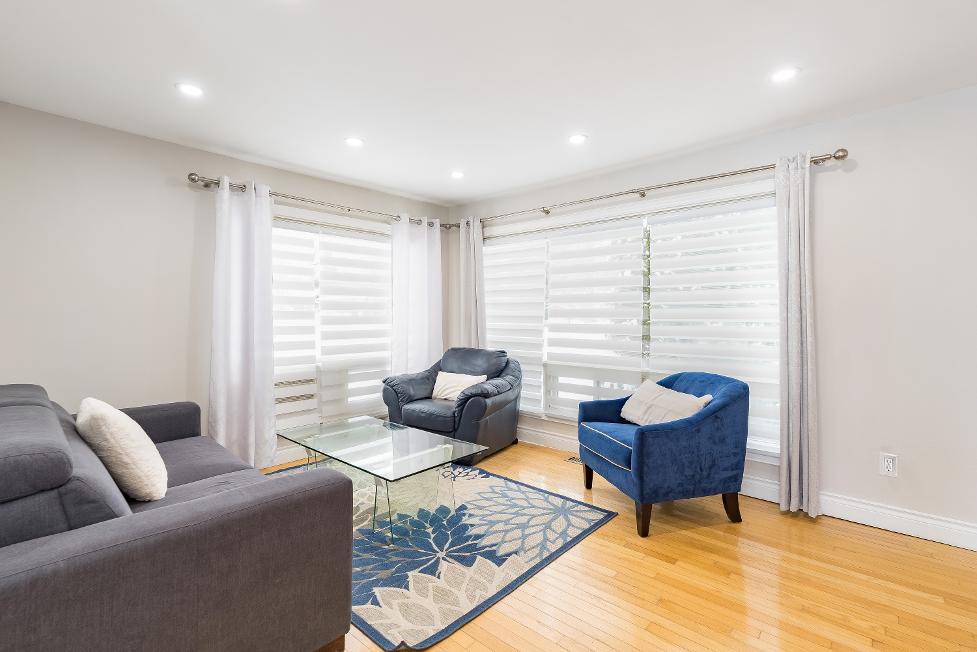 - Retreat to the expansive backyard, featuring a generousdeck surrounded bymaturetreesand plentyof lush greenspace