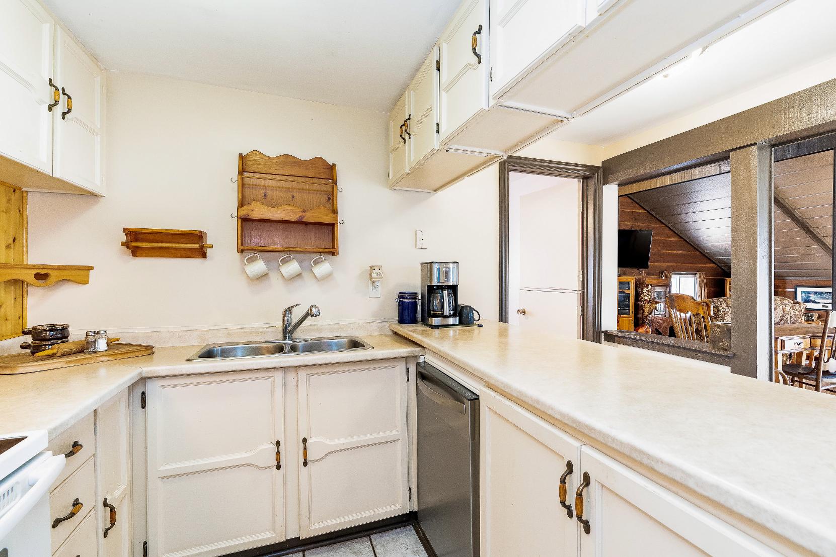 - Amplecounterspace complemented bya wood paneled backsplash