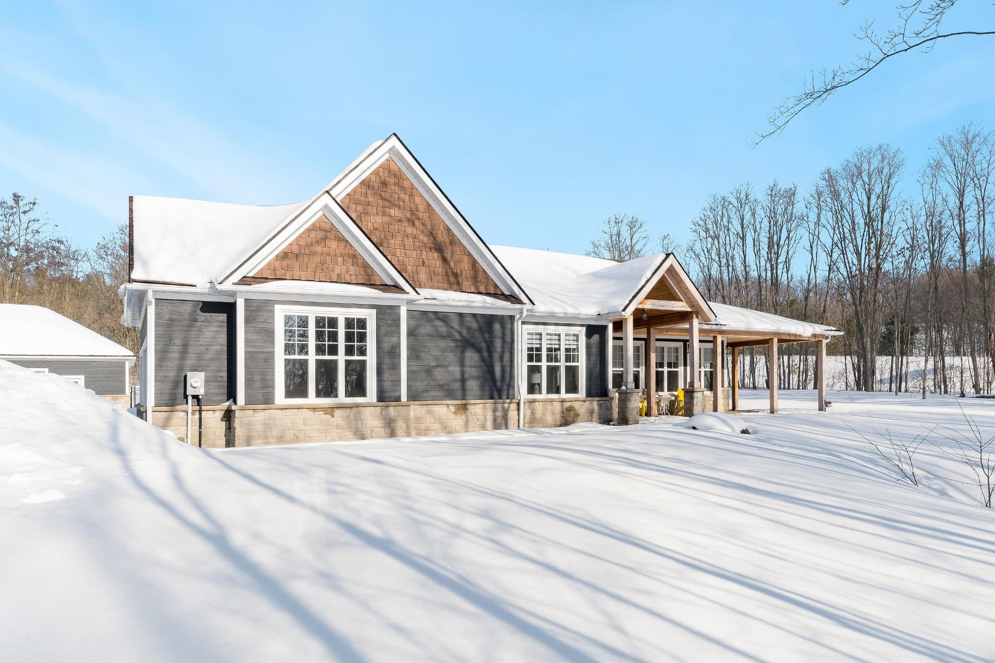 - Custom-built bungalowcompleted in 2023 finished with a wood and stone exterior