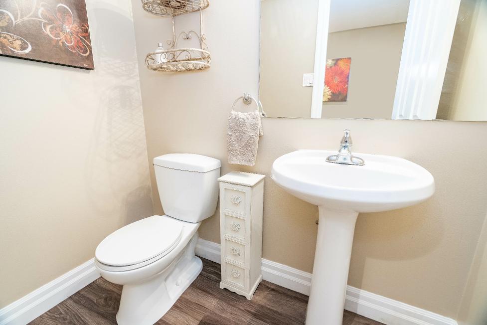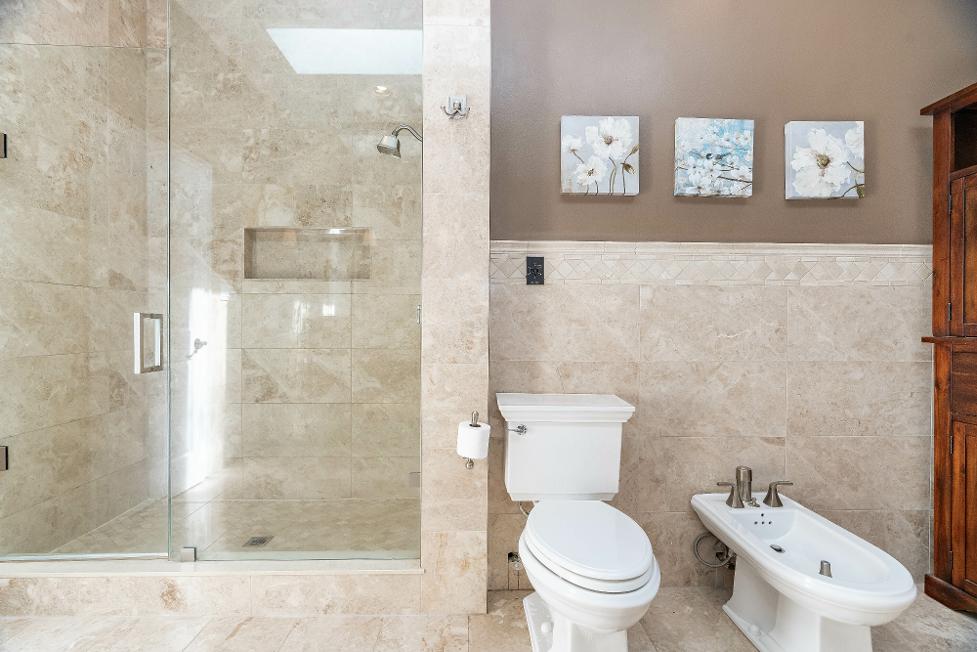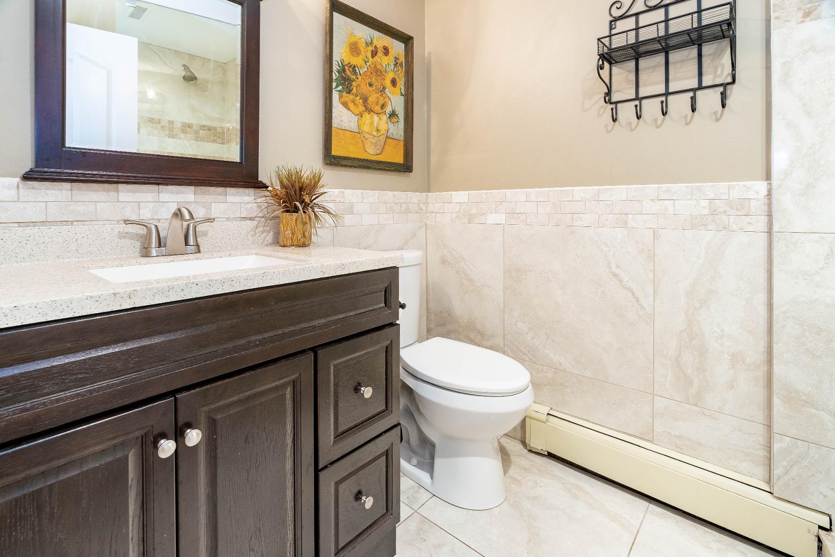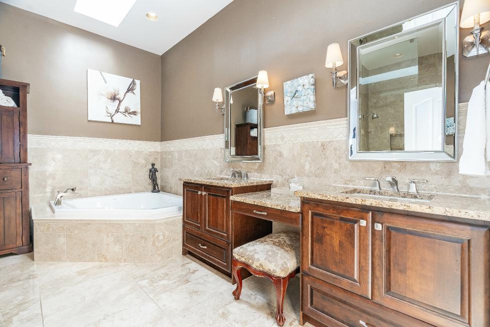 - Granite-topped vanitywith under-sinkstorageand a tiled backsplash