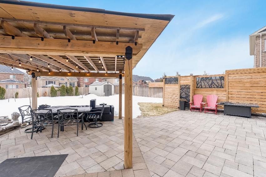 Step outsideto a beautifullylandscaped,fullyfenced backyard completewith a pergola and plentyof space to relaxorhost,whilea two-cargarage and extended drivewayprovideample room forparking,storage,and added convenience