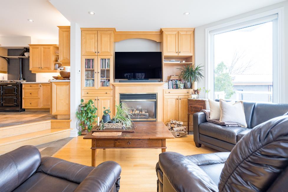 The fullyfinished walkout basement presenting two largeroomsperfect forguest accommodation,a 3-piecebathroom,and a cold storageroom,in addition to a largefamilyroom completewith a gas fireplace and leading onto a bricked patio area and a covered screened-in porch createsflexible living forthe wholefamily