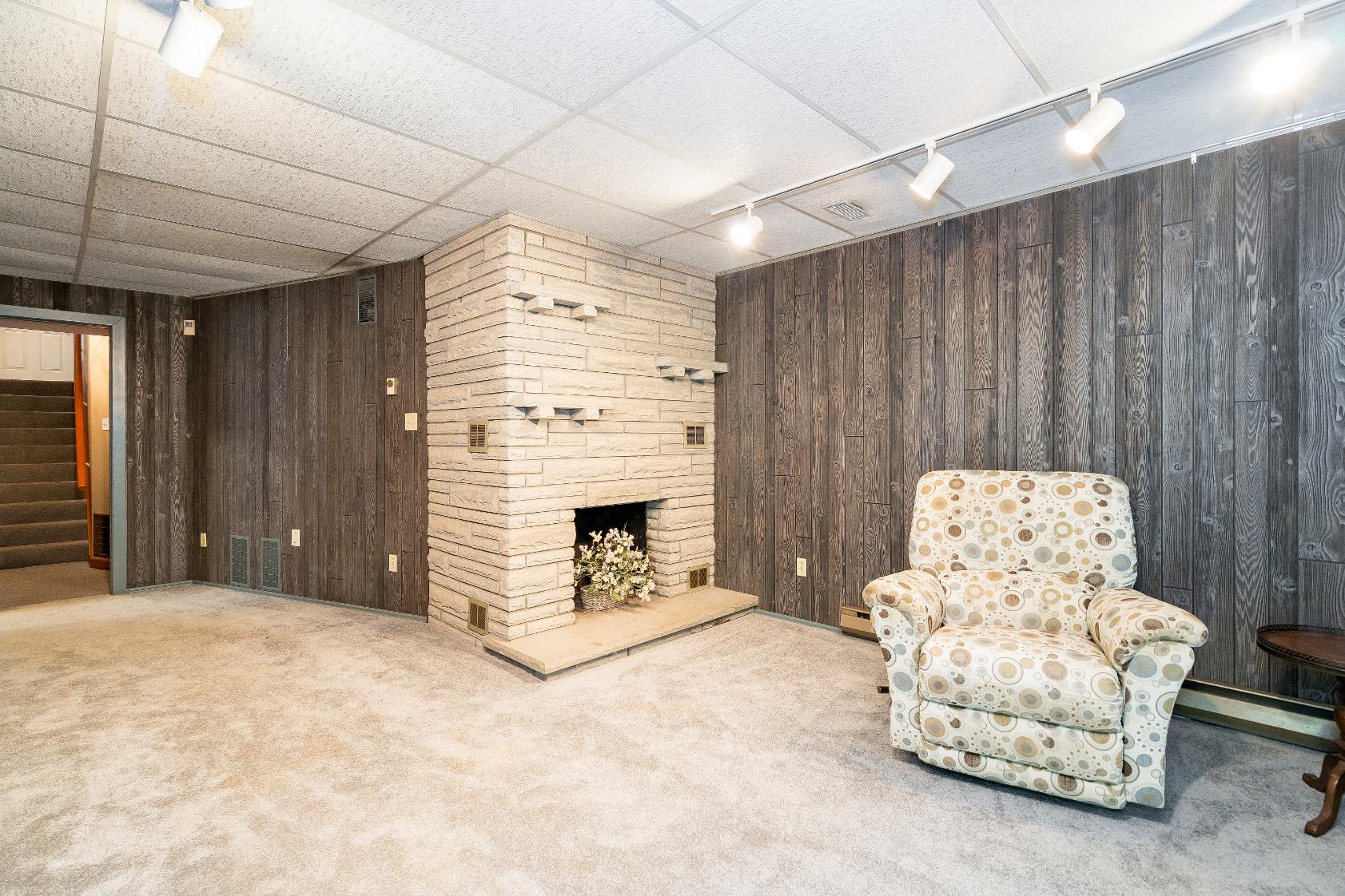 - Wood paneled walls
