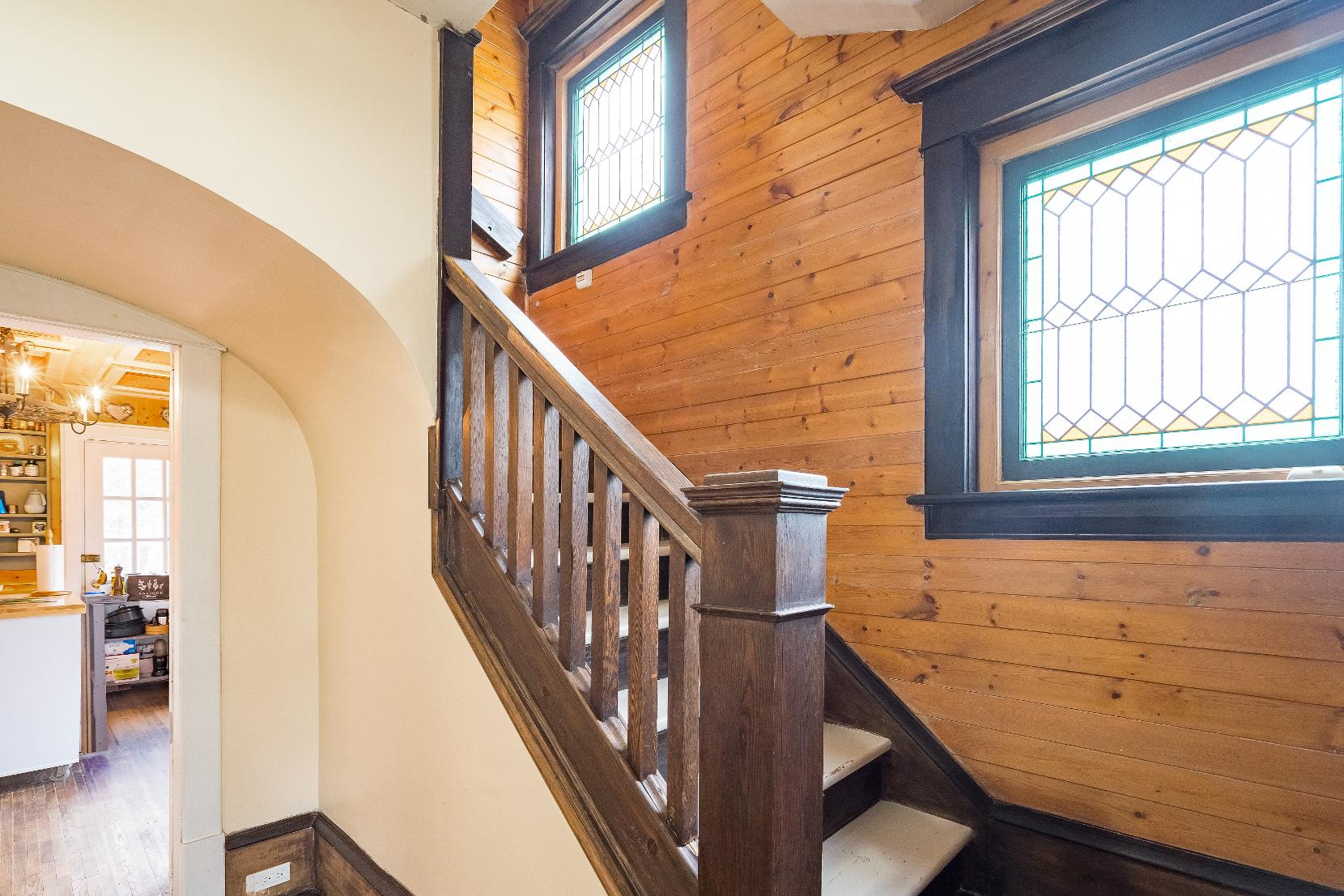 Wraparound covered porch,classic all-brickexterior,hardwood floors,and stained-glass windowsbring true characterand warmth,offering a charming curb appealalong with inviting spacesto relax,entertain,and enjoythe neighbourhood in everyseason
