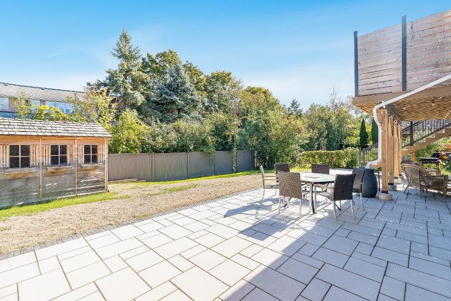 - Fullyfenced backyard featuring a deckand patio with privacywallsfor private outdoorrelaxation