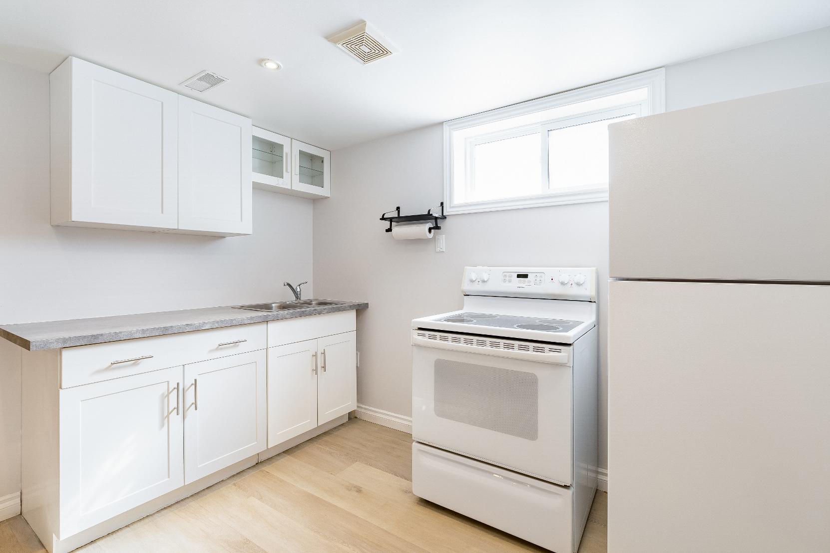 Descend to the versatilebachelor-style lowerlevelsuitecomplete with a kitchenette and a fullbathroom,idealforin-laws,guests,orpotential rentalincome