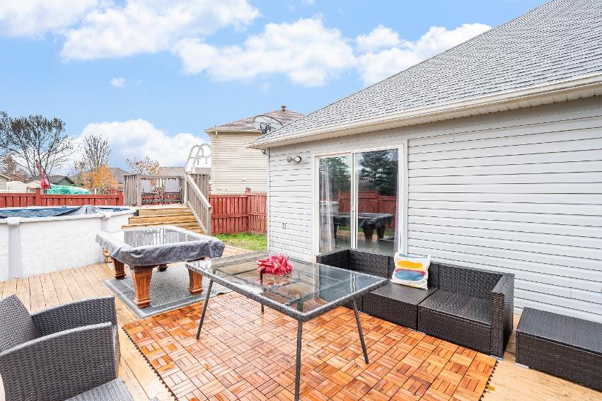 - Fullyfenced backyard oasis featuring a deck,no rear neighbours,and a 15' above-ground poolwith a newliner added in2025