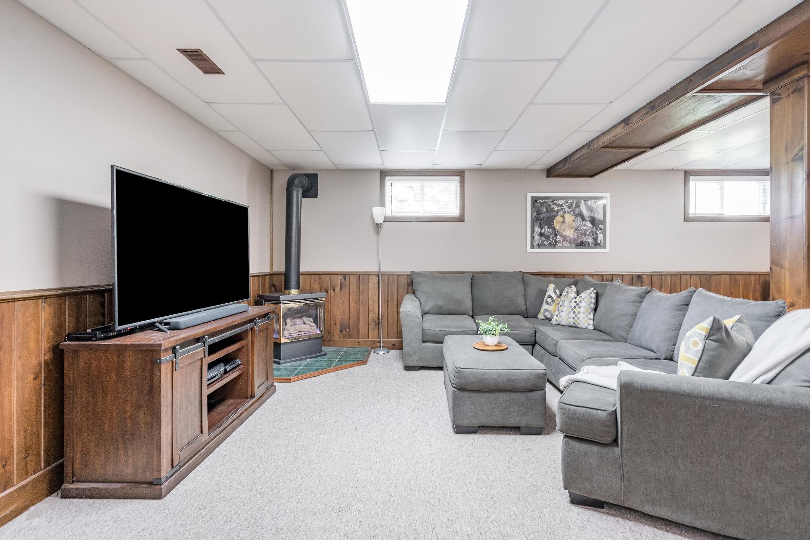 Impeccablydesigned forcomfort and functionality,the bungalowofferscozygas fireplaceson both levels,a fullyfinished basement with plentyof room fora homeoffice orguest retreat,amplestorage,and a heated garage foryear-round convenience