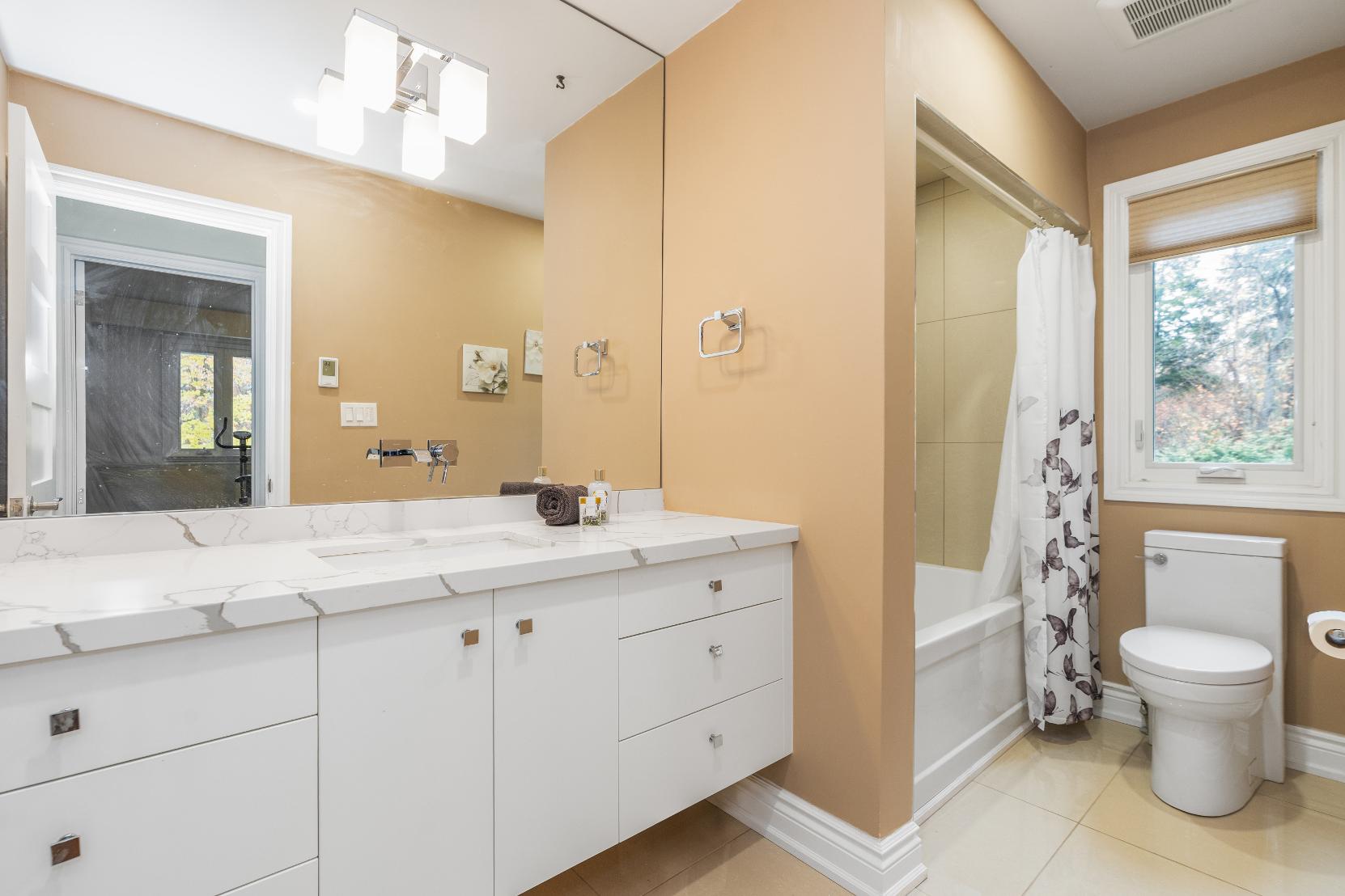 - Quartz-topped vanitywith ample counterspaceand under-sinkstorage