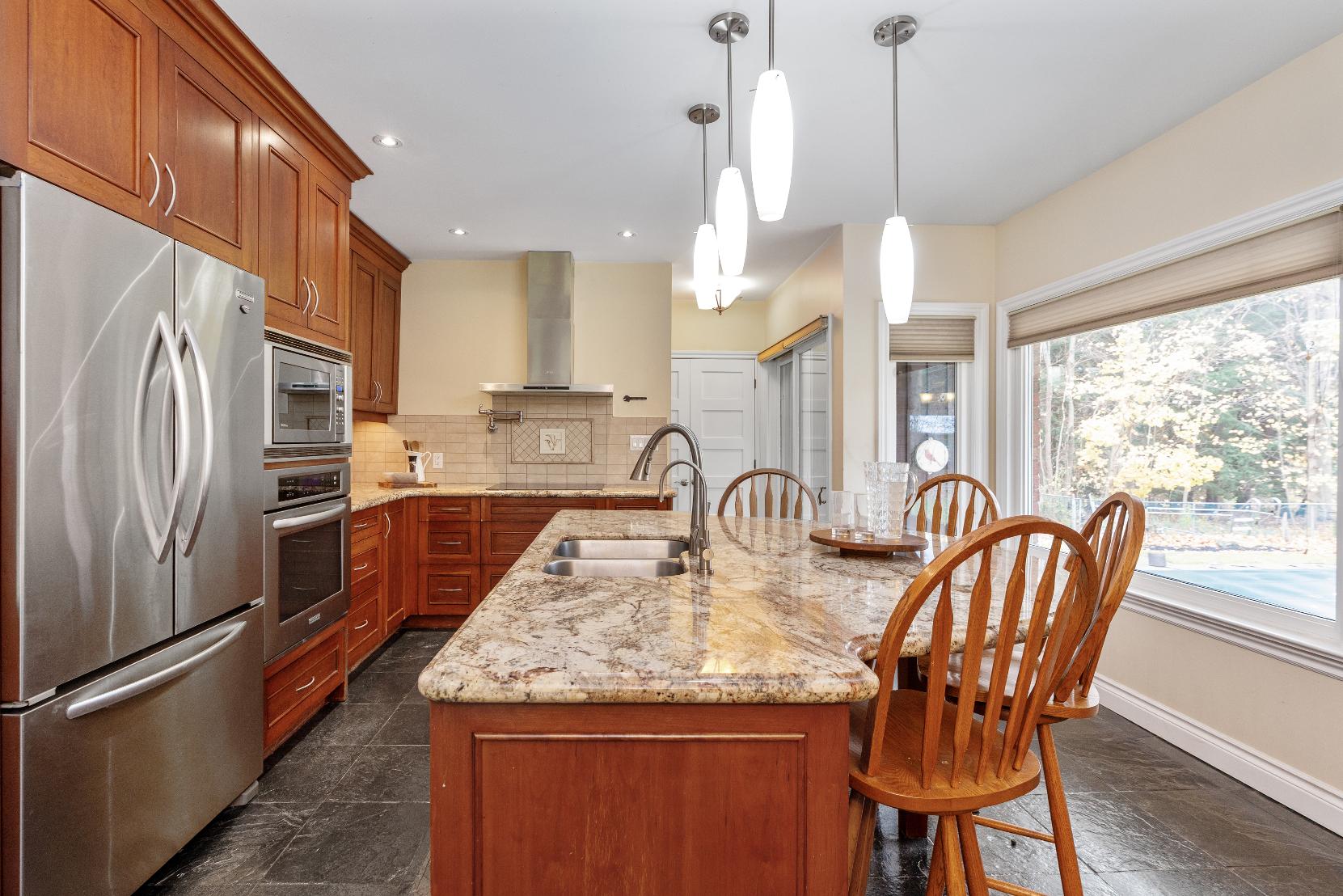 - Expansive centre island flaunting a dualsink with a watertap and breakfast barseating