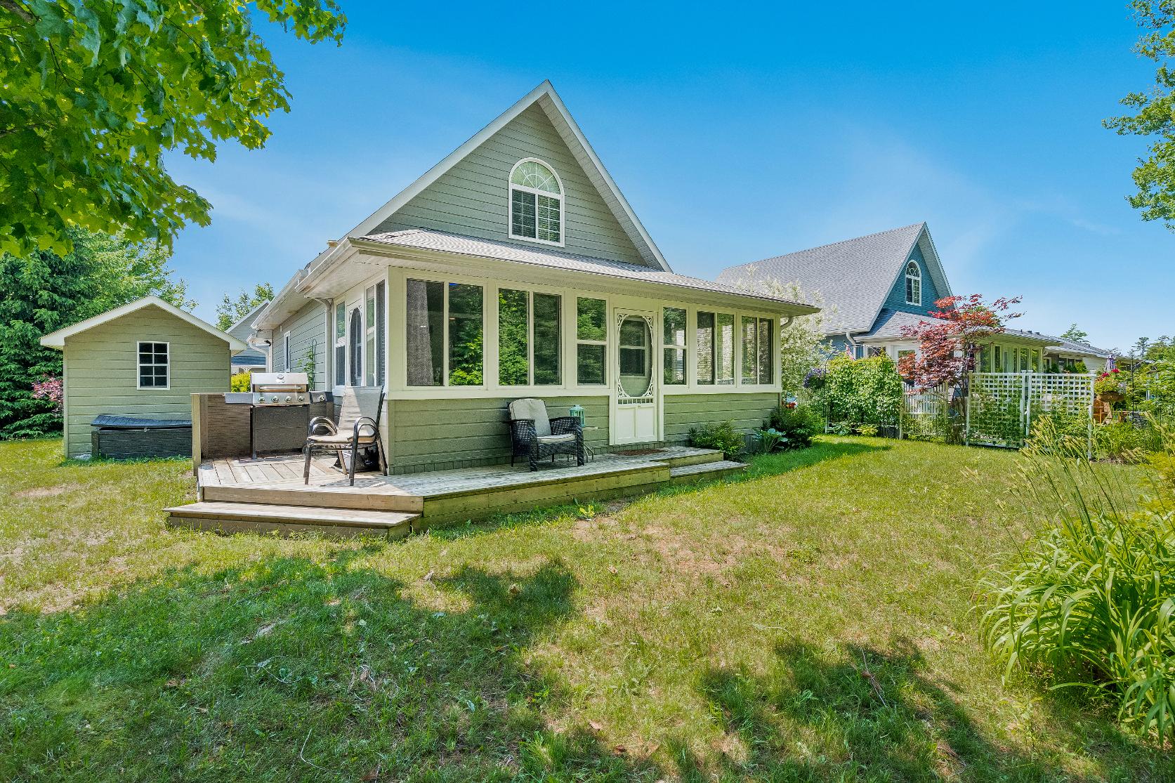 Situated on a peacefulstreet in the sought-afterLakesof Wasaga CountryLife,this4-season chalet-style home deliverscozyliving with the added securityof a gated community,along with a full-width front porch inviting youto relaxwith yourmorning coffee orunwind asthe sun setsand unlike manyhomesin the community,thisonebacksonto maturewoodsoffering a raresense of privacywith a tree-lined yard and direct accessto a peacefulwalking trailcreating yourown secluded escape