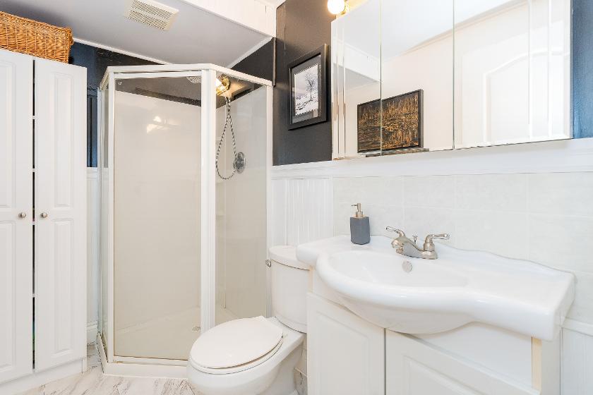 The primarysuitedeliversa walk-in closet,a beautifullyupdated 4-piece ensuite,and French doorsopening to the deck,while the main levelalso includesa second bedroom,a fullbathroom,and laundryroom,alongsidethe fullyfinished basement which expandsthe living space with two additionalbedrooms,a 3-piece bathroom,and a spaciousrecreation room with a gas fireplace,and enjoypeaceof mind with recent updatesincluding a reshingled roof (2019),an updated furnaceand hot water tank(2022),and an updated airconditioner(2023),so youcan move inwith confidence