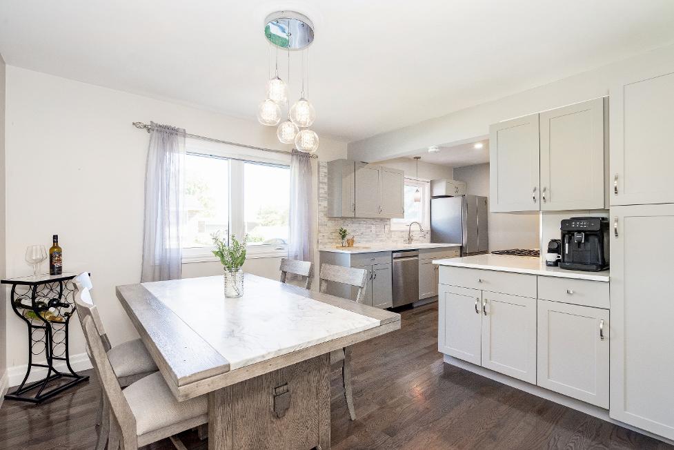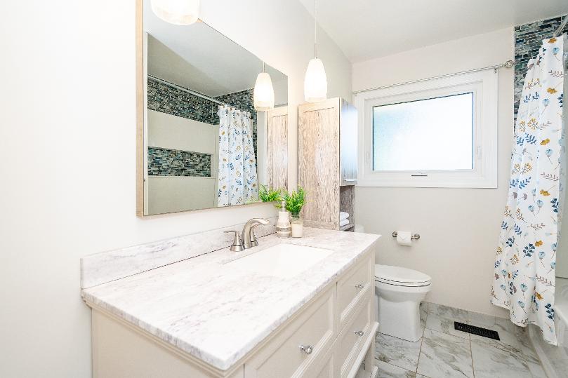 The main levelhasbeen completelytransformed with a modern kitchen and appliances,an updated bathroom,fresh flooring,newtrim and mouldings,and a fresh coat of paint throughout