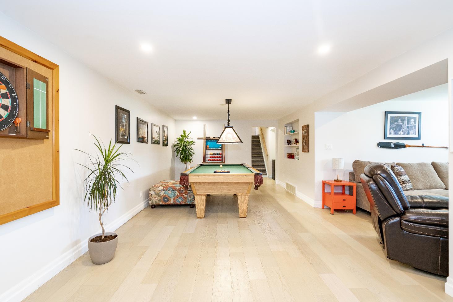 The basement hasbeen fullyredesigned with newflooring,upgraded lighting,hardwired internet and cableconduits,plusa brand-newlaundry room and gym space