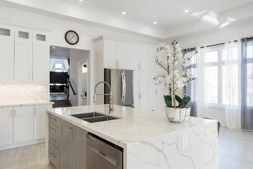 Spanning over3,600 square feet of finished living space,thiscustom-built residence isa true showcase of qualityand attention to detail,wherebook-matched quartzwaterfallcountertops,widesix-inch plankhardwood,porcelain tile,and designerfixturescome togetherin a homethoughtfullycrafted with no compromisesand no shortcuts