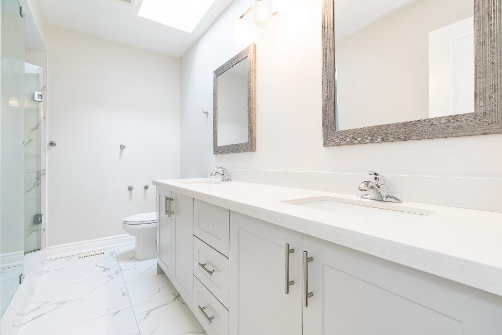 - Oversized dualsinkvanitywith an abundance of below-sink storage