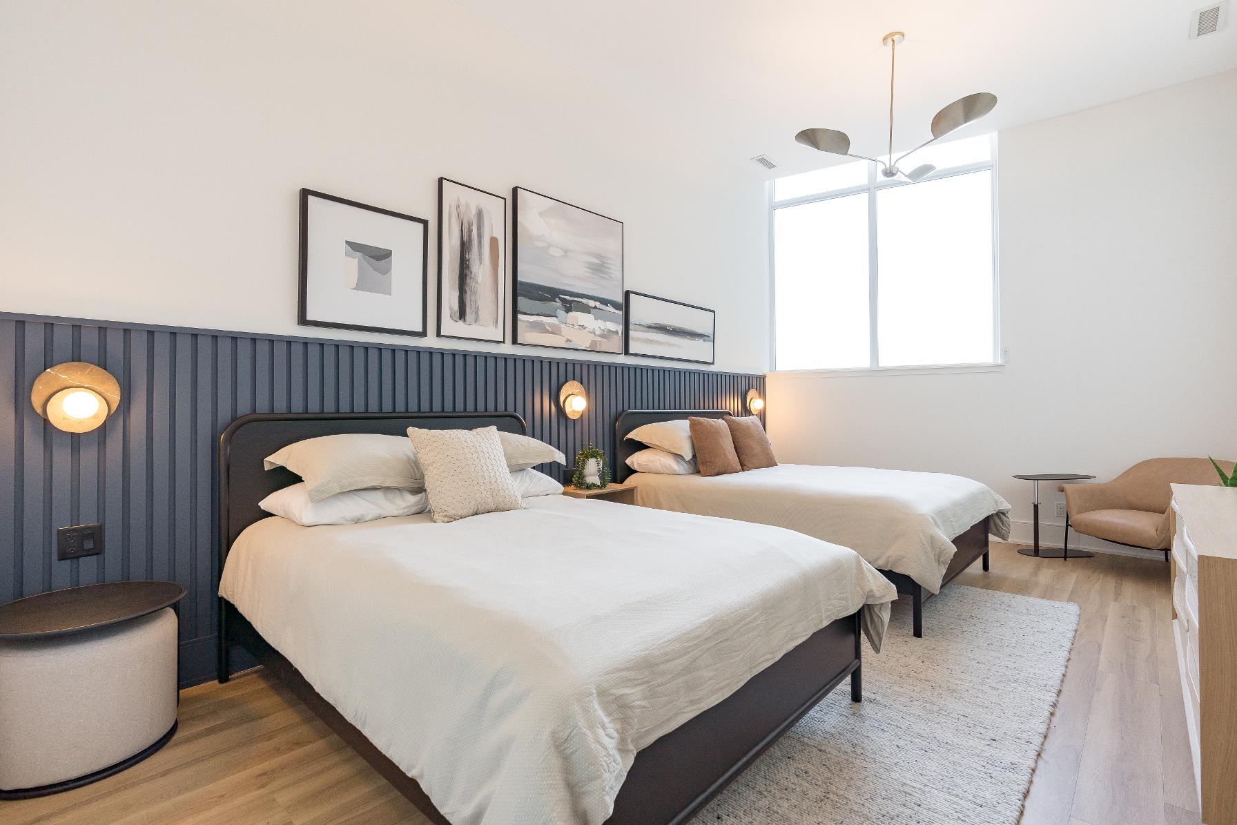 Offering 856 square feet of thoughtfullydesigned living space plusa well-sized den,thislayout providesversatilityfora home office,reading retreat,orguest area,and comprisesover$24,100 in premium upgradesincluding a stone bathroom vanity,a waterfall-edgekitchen island with matching backsplash,upgraded tileselections,high-end appliances,and sleekrollerblinds