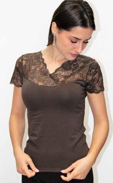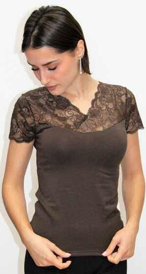 Ancora un nuovo colore per Lajole Gold: è il marrone cioccolato, che viene utilizzato per la maglieria a manica lunga o corta, sempre nel mix fra cotone, modal e pizzo. Questa tonalità di marrone dona particolare eleganza alla maglia a maniche corte con scollo a V, impreziosito dal morbido pizzo elasticizzato, ideale da indossare come sottogiacca. Inoltre è presente anche nella maglia a maniche lunghe sempre in modal ma con manica, collo e fondo in morbido pizzo elasticizzato. Anche in questo caso sono abbinabili gli slip in cotone modal con fascia pizzo vita.