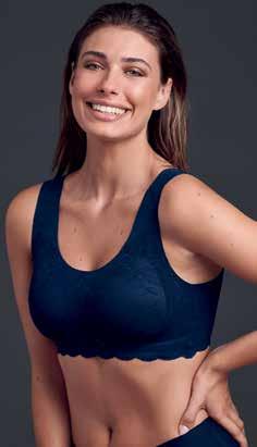 Caratterizzata da un motivo floreale effetto pizzo decorato da un delicato profilo in seta, vanta coppe preformate con coppette in schiuma estraibili. Anche le larghe spalline con un rinforzo invisibile sulle spalle accentuano la sensazione di morbidezza. Il dorso