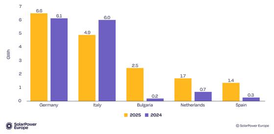 Solar Power Europe 65,1 GW (-0,7%) Dicembre 2025 Circa 61,2 GW (-6%) Dicembre 2025