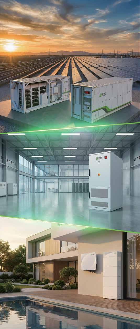 Soluzione All in One che combina inverter, batterie, BMS e quadri di distribuzione AC e DC.