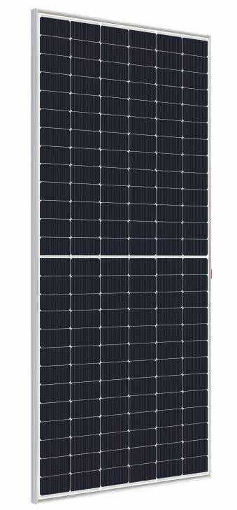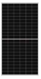 Modulo bifacciale doppio vetro con potenza compresa tra 625 e 650 Wp, pensato per applicazioni verticali, su terreni innevati o con elevata umidità oltre che regioni desertiche e fortemente ventose. Ha un’efficienza fino al 23,3% ed è caratterizzato da un design simmetrico che riduce il rischio di microfratture, il coefficiente di bifaccialità raggiunge l’80%.