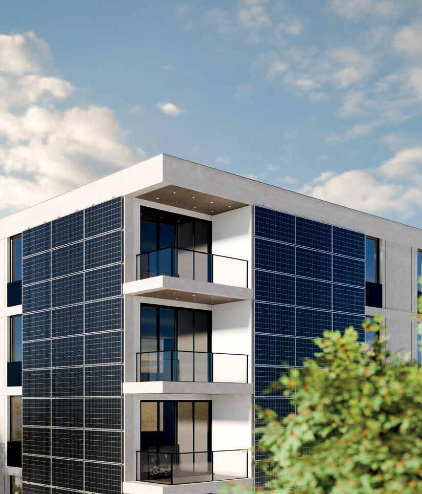 Modulo bifacciale a doppio vetro con struttura nera e retro trasparente e tecnologia back contact. Grazie alla tecnologia anti-ombreggiamento, sono garantite prestazioni ottimali anche in caso di ombreggiamento parziale. Il modulo ad alta efficienza è pensato per il settore residenziale ed è caratterizzato da garanzia di 30 anni.