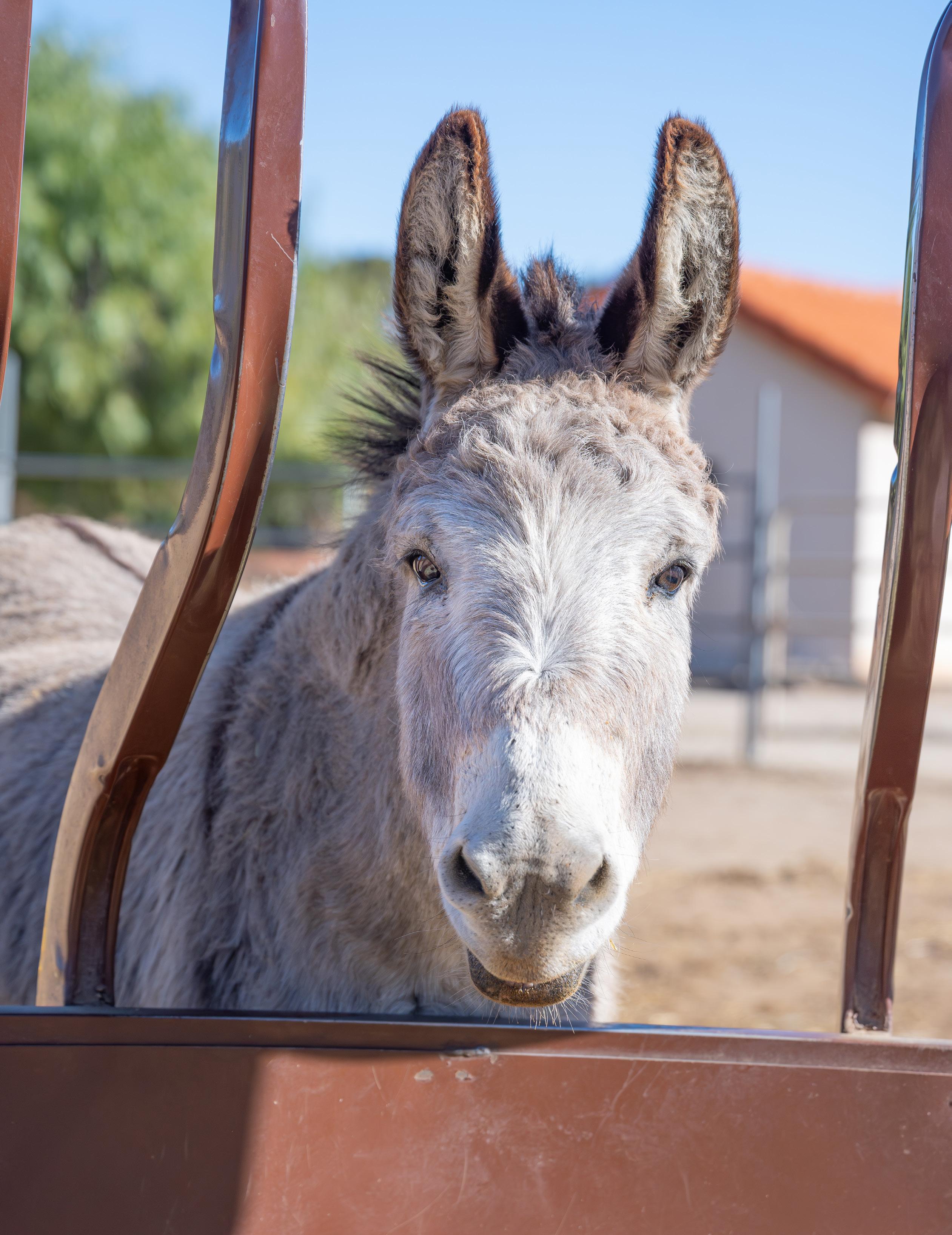 When animal advocate and Maya’s Legacy member Barbara Thompson left her estate to support Farm Sanctuary’s mission, she also ensured that Gee donkey and his friends would be in our care. We brought Gee, four other donkeys, two goats, and a steer to our Watkins Glen sanctuary, where Gee soon saw himself as his group’s leader (a role his friend MJ donkey also claims). Regardless, adorable and fun Gee is a beloved part of our sanctuary family and his herd—and an inspiring example of the impact an individual can have by making sanctuary their legacy.