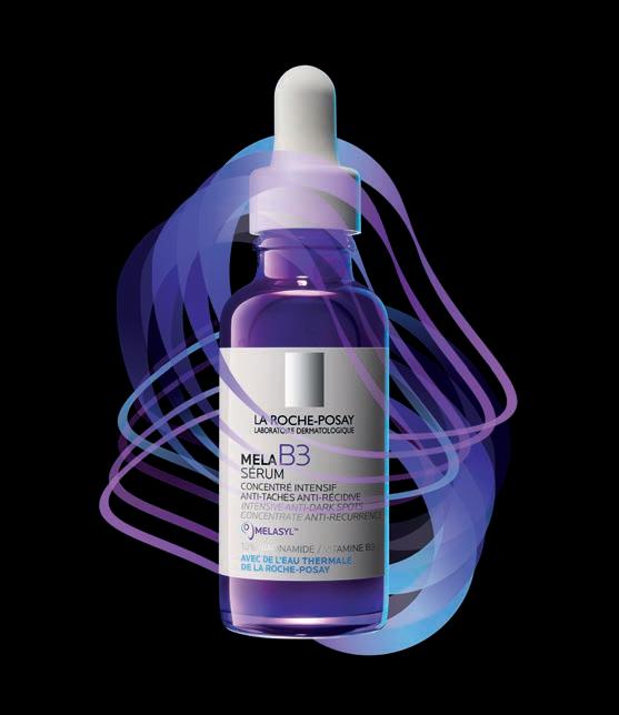 *Fuente: Barómetro Dermatólogos 2023, Argentina. 180 Casos. Aplus Healthcare Market Research. Aplica en patologías especí cas: atopia; piel sensible, intolerante, reactiva o alérgica; piel dañada o lesionada; acné; pre y post procedimientos estéticos. **Puntuación clínica en 41 mujeres que presentaron mejorías en manchas oscuras persistentes, 8 semanas, 2 veces por día. ***Melasyl tiene un nuevo y único mecanismo de acción de La Roche-Posay: intercepta el exceso de melanina antes de que marque a piel. MELA B3 SERUM MANCHAS CORREGIDAS EN 8 SEMANAS** 85% EL NUEVO ACTIVO PARA COMBATIR LAS MANCHAS COMO NUNCA ANTES*** MELASYL ™ MOLÉCULA PATENTADA POR L’ORÉAL +10% NIACINAMIDA NUEVO DEL 1 AL 25 DE JUNIO
