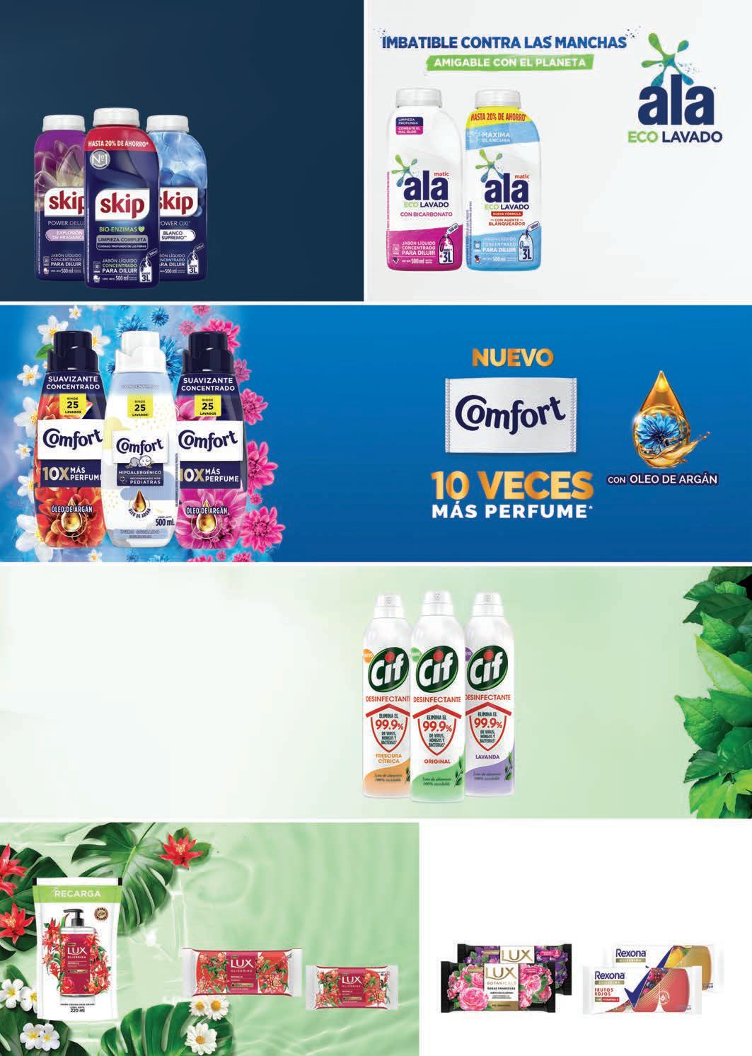 Catálogo válido del 01/06/2024 al 29/06/2024 o hasta agotar stock. Edición de 100.000 unidades. Prohibida su reproducción total o parcial. entregado en mano del cliente. no arrojar en la vía pública. las imágenes son solo ilustrativas y pueden no corresponder a la descripción. Las promociones llevando 2 o de descuento en la segunda unidad aplica llevando dos productos iguales 12 2.007 1.414 $886 $2.398 1.893 Jabón Rexona Glicerina 3 x 90gr. Jabón Lux 3 x 120gr. Lux Glicerina 3 x 90gr. Lux Glicerina x 220ml. $2.228,20 $2.821,64 $1.043,40 $1.664,39 $2.361,32 Lux Glicerina $4.516 $4.522 $000 Jabón líquido para diluir Skip x 500ml. Suavizante concentrado Comfort x 500ml. Jabón líquido para diluir Ala x 500ml. $1.774 $2.007 $1.414 $886 $2.398 $1.893 Desinfectante en aerosol Cif x 260ml. $2.088,04 Jabón Rexona Glicerina 3 x 90gr. Jabón Lux 3 x 120gr. Lux Glicerina 3 x 90gr. Lux Glicerina x 220ml. $2.228,20 $2.821,64 $1.043,40 $1.664,39 $2.361,32 Lux Glicerina x 90gr. 15%DESCUENTO 15%DESCUENTO 2DESCUENTO 15%DESCUENTO 15%DESCUENTO ASEPXIA PINA JABON 100 GRJAB ASEPXIA AZUFRE X 100 GR JAB ASEPXIA BICARBONATO X 100 G JAB ASEPXIA CARBON X 100G JAB ASEPXIA EXFOLIANTE X 100G JAB ASEPXIA FORTE X 100G 650240062049 650240007828 650240036965 650240035401 650240004643 650240004292