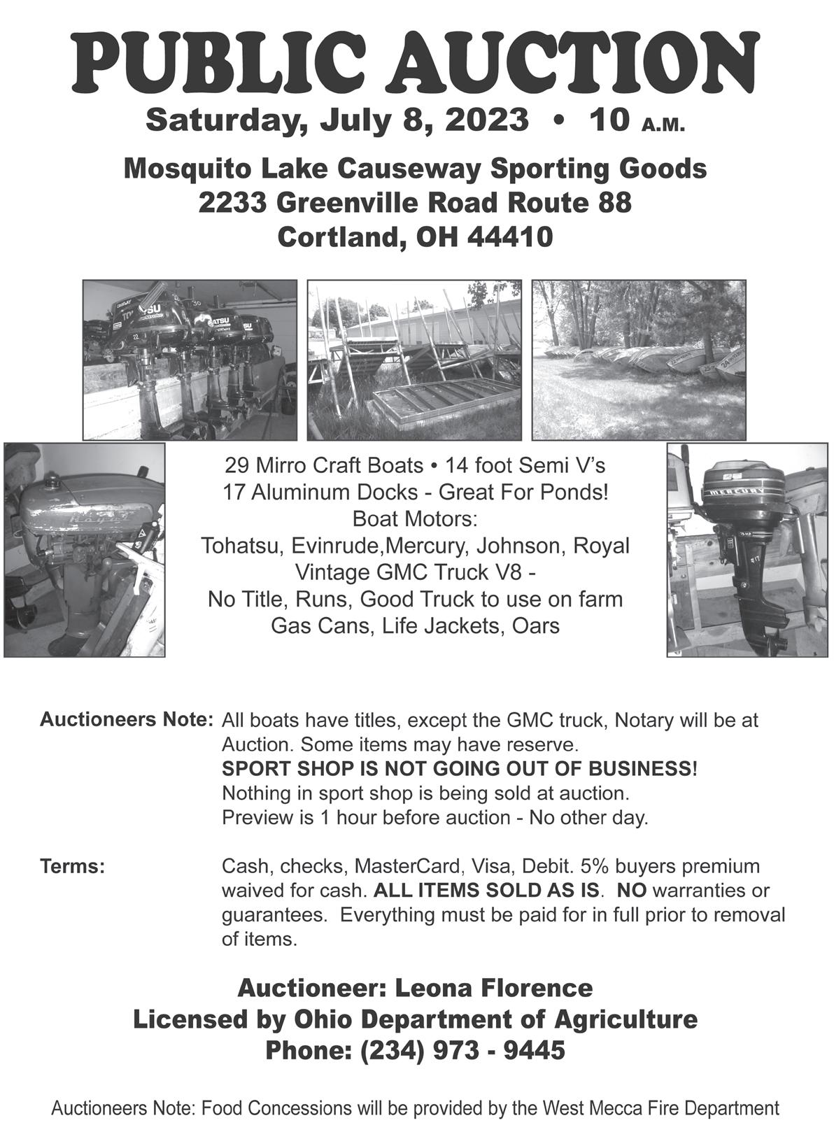 NOTICE - Please do not ask to have your public auction advertised in this Public Auction Column. This column is a listing of Public Auctions which are or have been displayed elsewhere in The Auction Guide. Auction advertising must be in our office by Thursday to be listed here the following Thursday.