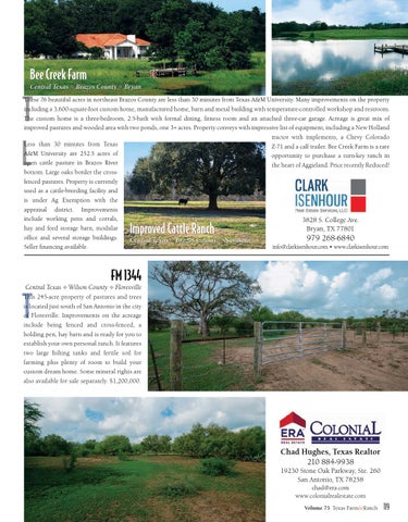 Chad Hughes, Texas Realtor 210 884-9938 19230 Stone Oak Parkway, Ste. 260 San Antonio, TXÂ 78258 chad@era.com www.colonialrealestate.com Volume 75 Texas Farm&Ranch