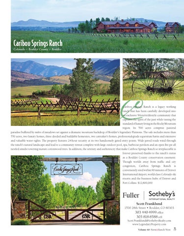 303 440-4999 office 303 818-8588 cell Scott.Franklund@SothebysRealty.com www.LegendaryProperty.com Volume 40 Farm&Ranch West