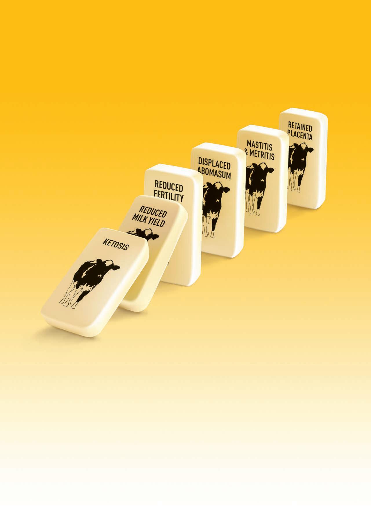 Ketosis has a domino effect on the stability of the health of your herd, allowing damaging and costly disease conditions to topple their performance.