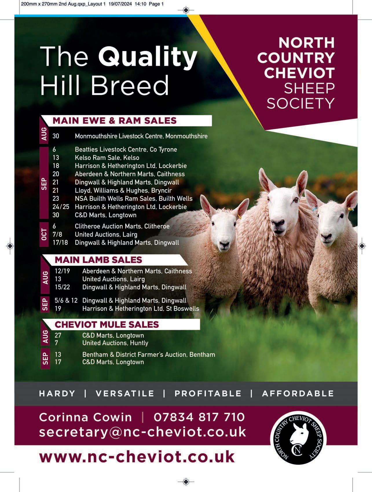 Tuesday 1st October Sale of all classes of BREEDING SHEEP Inc PENNINES SALE of CHEVIOT, LONK, GRITSTONE, WHITE FACED WOODLAND EWES & SHEARLINGS Evening sale of BLUE FACED LEICESTER SHEEP
