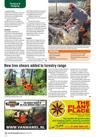 everything was well laid out and easy to get at and carrying out routine maintenance was straightforward with no tools required.” Captive nuts on the chain sprocket cover were considered a definite advantage, preventing them being lost while maintenance is carried out in the woods.