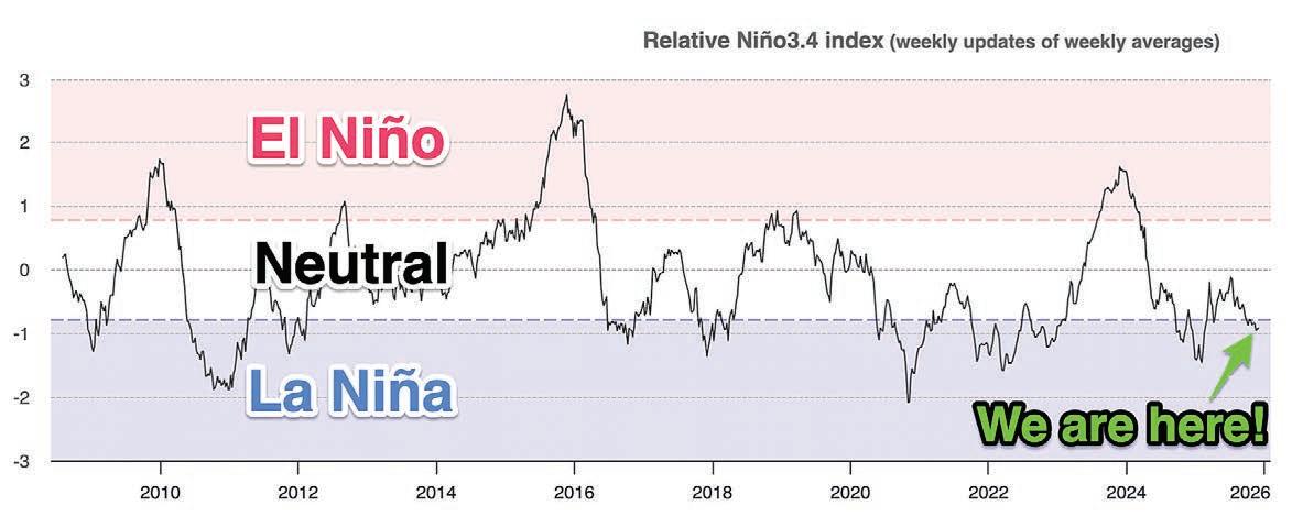 As for La Niña, global modelling suggests it may be all over by early 2026 – looking quite short lived.