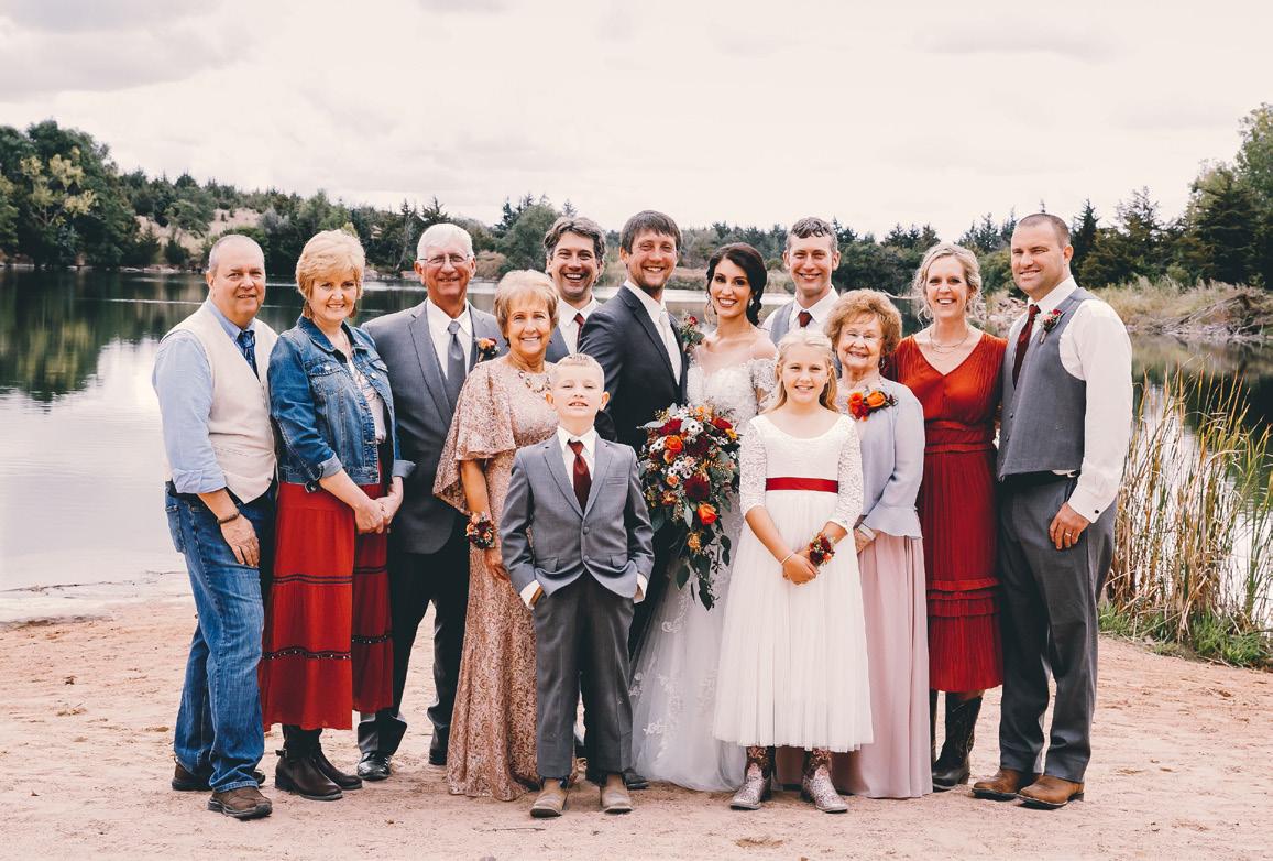 Phil and Sasha’s wedding day, October 3, 2020. Kirk and Michelle Lee (Mitzi’s sister and her husband), Del and Mitz, Justin, Phil and Sasha, Austin, Berniece Bialas, Dawn and husband Justin VerHoeven. In front, Kaden and Alyssa, children of Dawn and Justin.