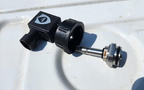 Agrifac distinguishes itself by offering a Gevasol solenoid on its StrictSprayPlus that can operate at up to 100 Hz. Frequencies are selected based on the criteria to never exceed 10 centimetres of spray distance in the off mode. It may never need to go to that frequency because, at high speeds, duty cycles are high enough that the off cycle is minimal. These valves are very sophisticated with a shock-dampening spring built into the plunger face and an ultra-fast three millisecond response time. One downside of the fast response is a flow limit of about four litres per minute, which can be