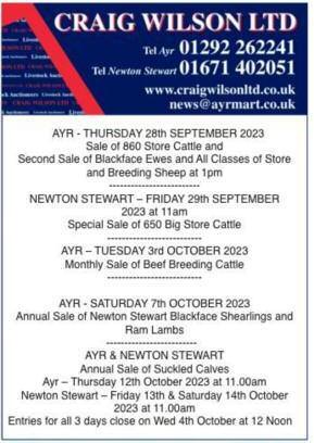 AYR - THURSDAY 12th SEPT 2024 At 11am Sale of Store Cattle and Store Lambs At 1pm