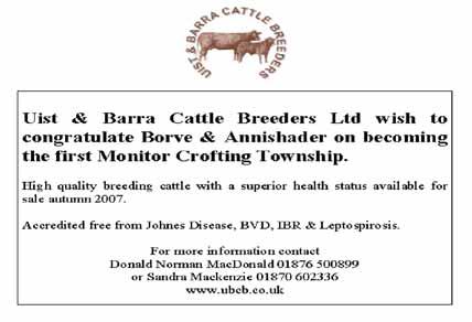 Borve and Annishadder Township is divided into 36 crofts, which average 6 to 7ha in size, on the in bye land, while the common grazings cover some 1430.21ha.